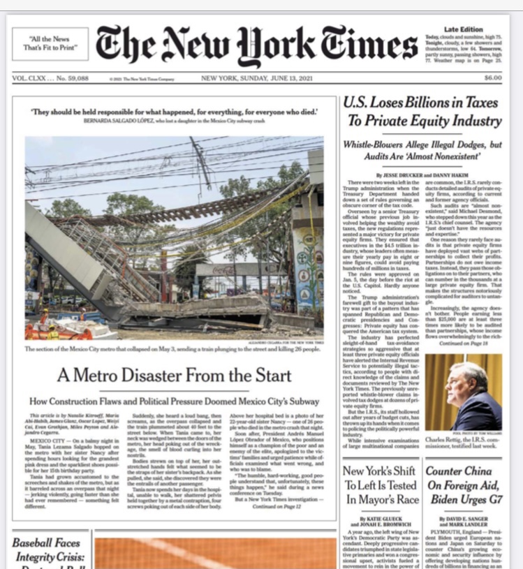 The New York Times concluye que la Línea 12 siempre fue una obra deficiente, porque siguió un patrón de oportunismo político. Pero eso se supo siempre, desde que Ebrard la inauguró días antes de dejar el GDF, para buscar ser candidato presidencial por el PRD.