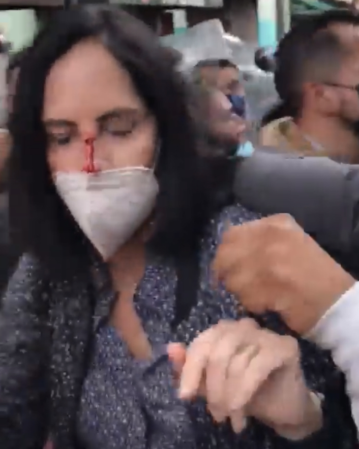 Lía Limón, alcaldesa electa de Álvaro Obregón, resultó lesionada y sangraba de la nariz debido a los golpes recibidos por los granaderos instalados a las puertas de la antigua Cámara de Diputados.