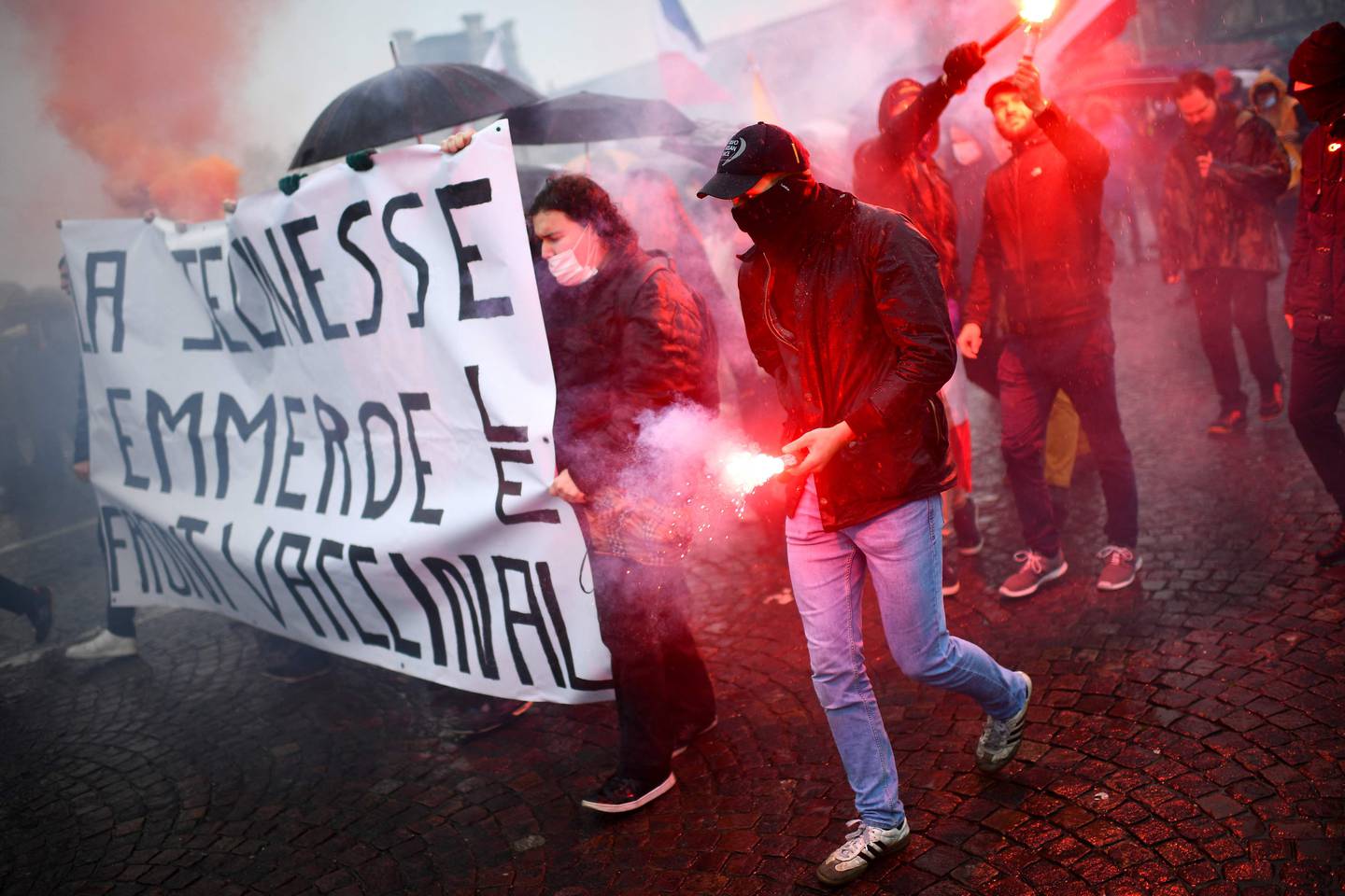 El sábado, dos videoperiodistas de la AFP y dos guardias de seguridad que los acompañaban fueron agredidos violentamente mientras cubrían una manifestación contra el pase de vacunación, convocada en París por el candidato de extrema derecha a las presidenciales Florian Philippot.