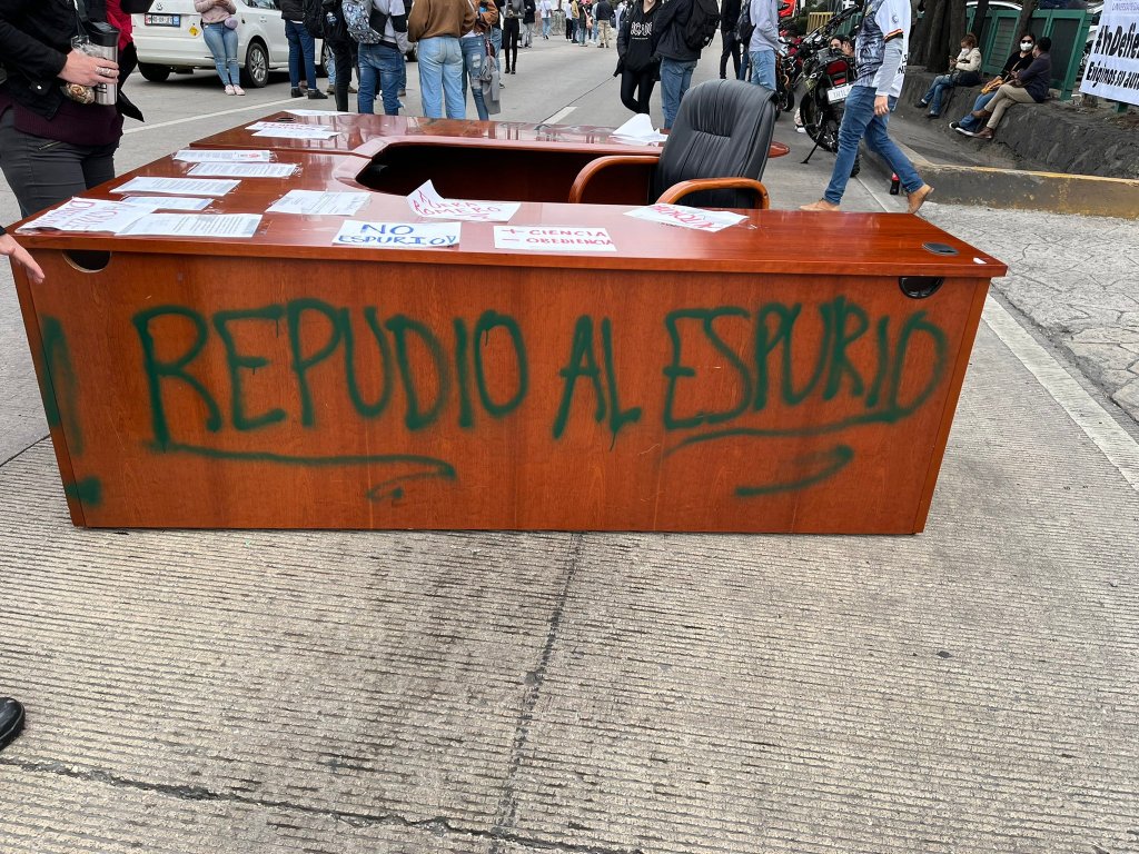El escritorio del director del CIDE terminó en la carretera México-Toluca. Los alumnos inconformes con la designación de José Antonio Romero Tellaeche, sacaron el mueble de la oficina y lo colocaron a la vista de todos, para ilustrar el momento que vive esa institución académica.