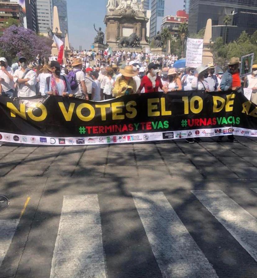 Uno de los ejes de la convocatoria fue el rechazo a la consulta de Revocación de Mandato, no porque estén en contra de instrumentos de control democrático, sino porque se está tergiversando su razón de ser, para convertirlo en un acto de propaganda.