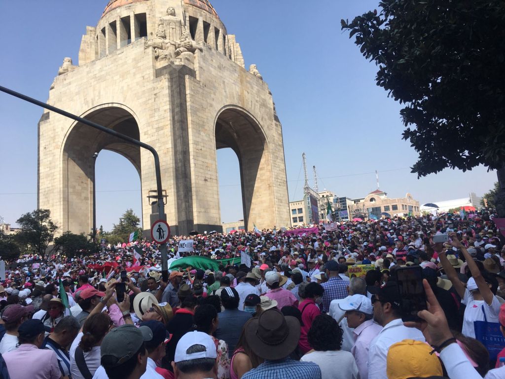 Para tener una idea. A las 11.30 de la mañana, la explanada del Monumento a la Revolución estaba llena y todavía no salían todos los contingentes del Ángel de la Independencia.