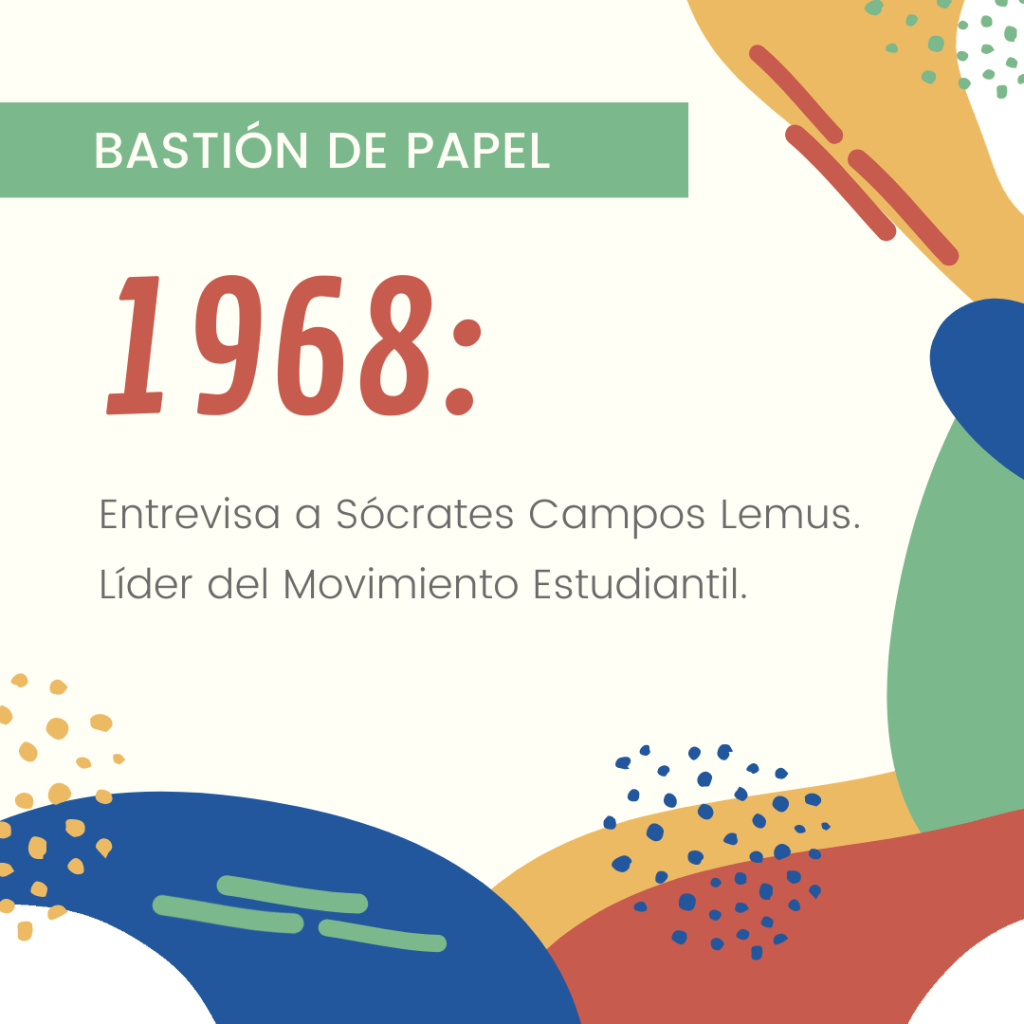 «Sócrates Campus Lemus recuerda las detenciones en el edificio Chihuahua de Tlatelolco, el 2 de octubre; la represión policial y militar en la UNAM y el IPN. Campos Lemus defiende el papel que desempeñó aquellos días que conmovieron y marcaron a México.»